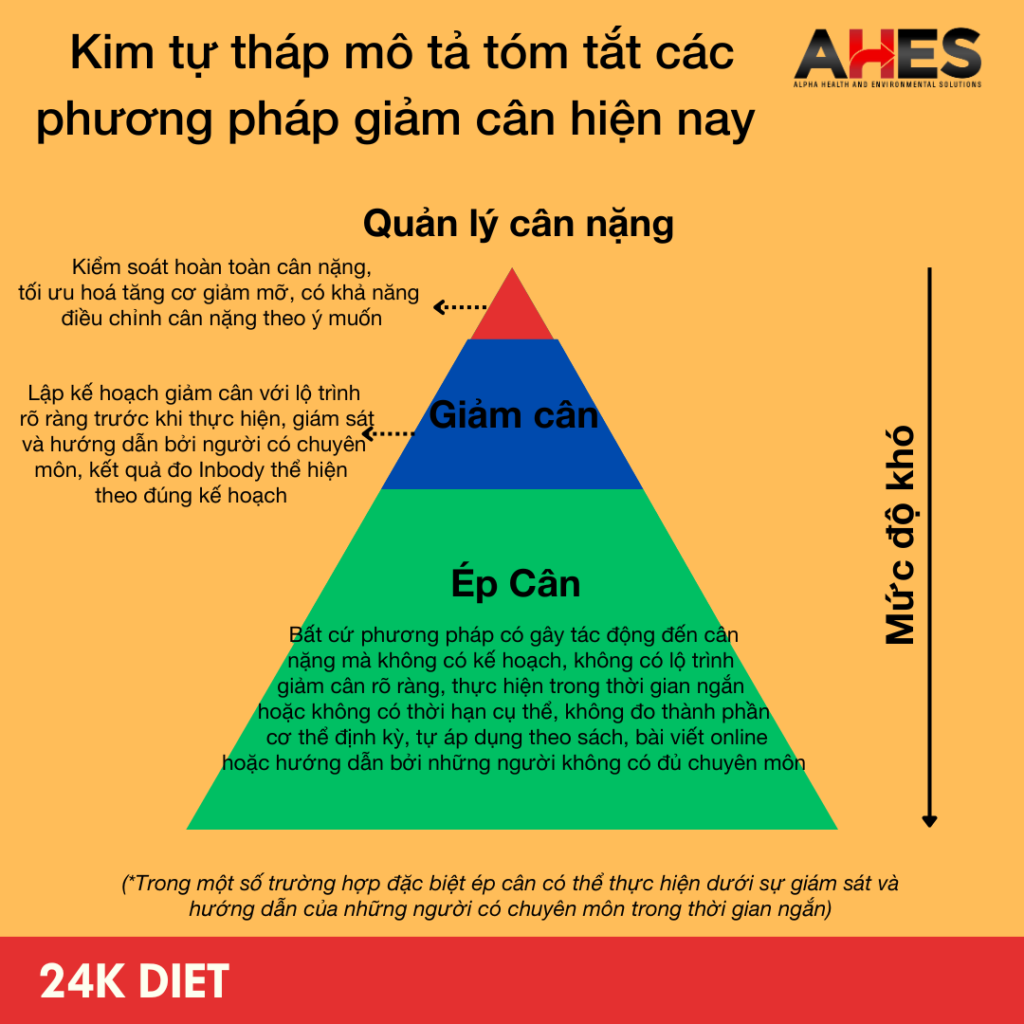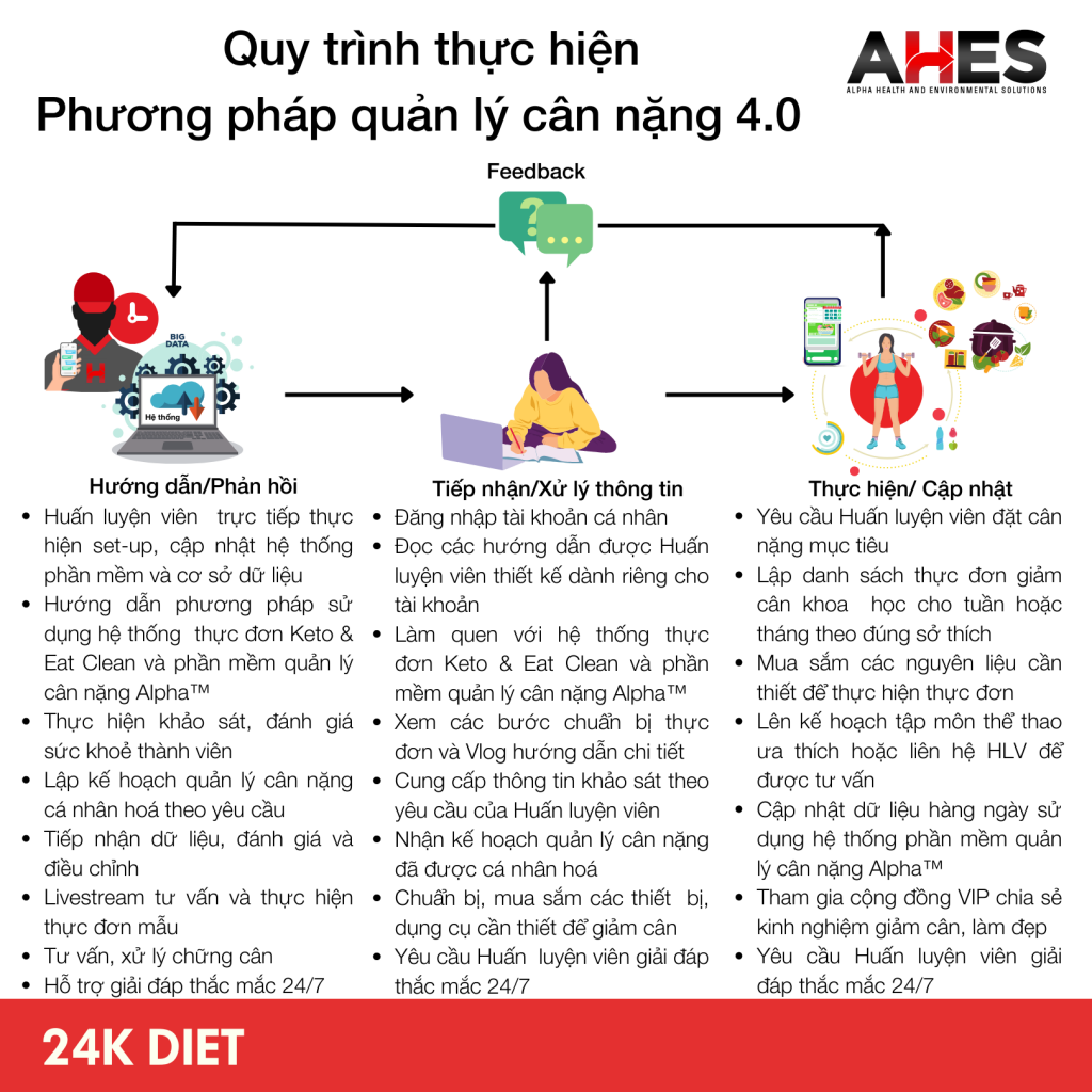 AHES ltd là đơn vị cung cấp giải pháp Quản lý cân nặng trực tuyến và toàn diện đầu tiên tại Việt Nam, với hệ thống 2000+ thực đơn Keto, Eat Clean lành mạnh được tích hợp cùng hệ thống phần mềm Tính chỉ số cơ thể Alpha™ và Quản lý cân nặng Alpha và Huấn luyện viên chuyên nghiệp có chứng chỉ quốc tế hướng dẫn trực tiếp sẽ đảm bảo giúp bạn có một trải nghiệm giảm cân hiệu quả, an toàn và khoa học nhất từ trước đến nay. Để tìm hiểu thêm về 24K DIET- Phương Pháp Quản Lý Cân Nặng 4.0 mời bạn xem thông tin dưới đây