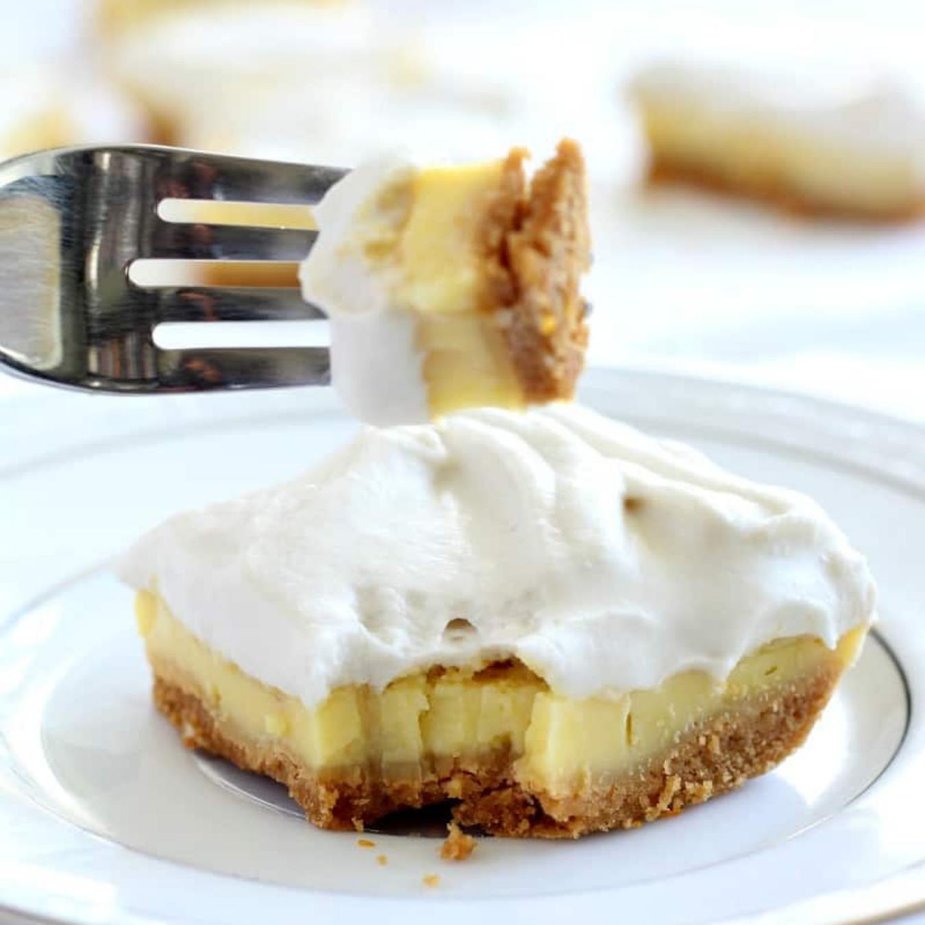 Đối với phần kem: dùng một cái bát (hoặc máy xay thực phẩm), trộn đều hỗn hợp trứng, nước cốt chanh, bột dừa và chất tạo ngọt. Phết đều lên bánh đã nướng
