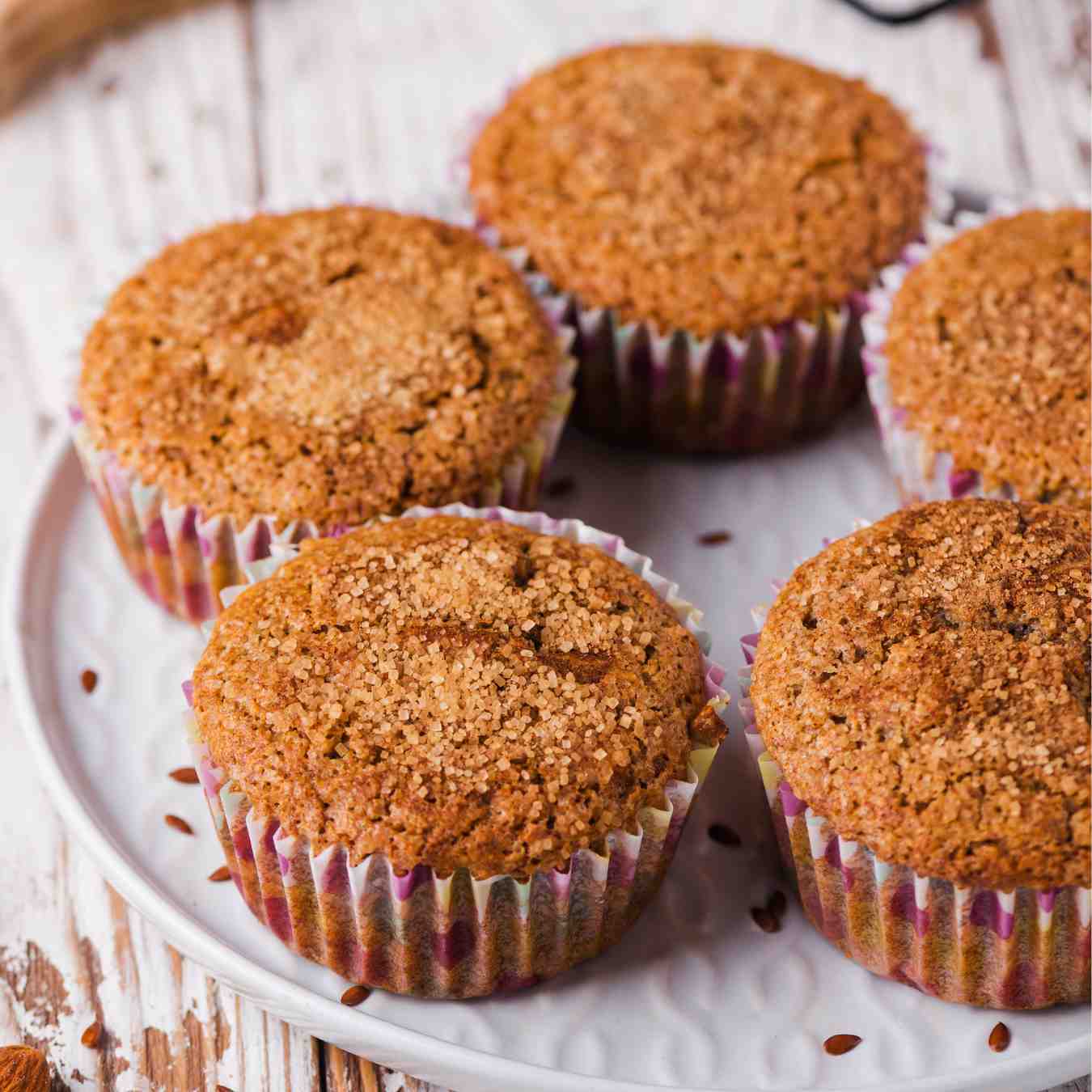 Dùng một cái bát, trộn bột hạt lanh với bột mì, bột Psyllium, đường Swerve, muối, bột nở và khuấy đều