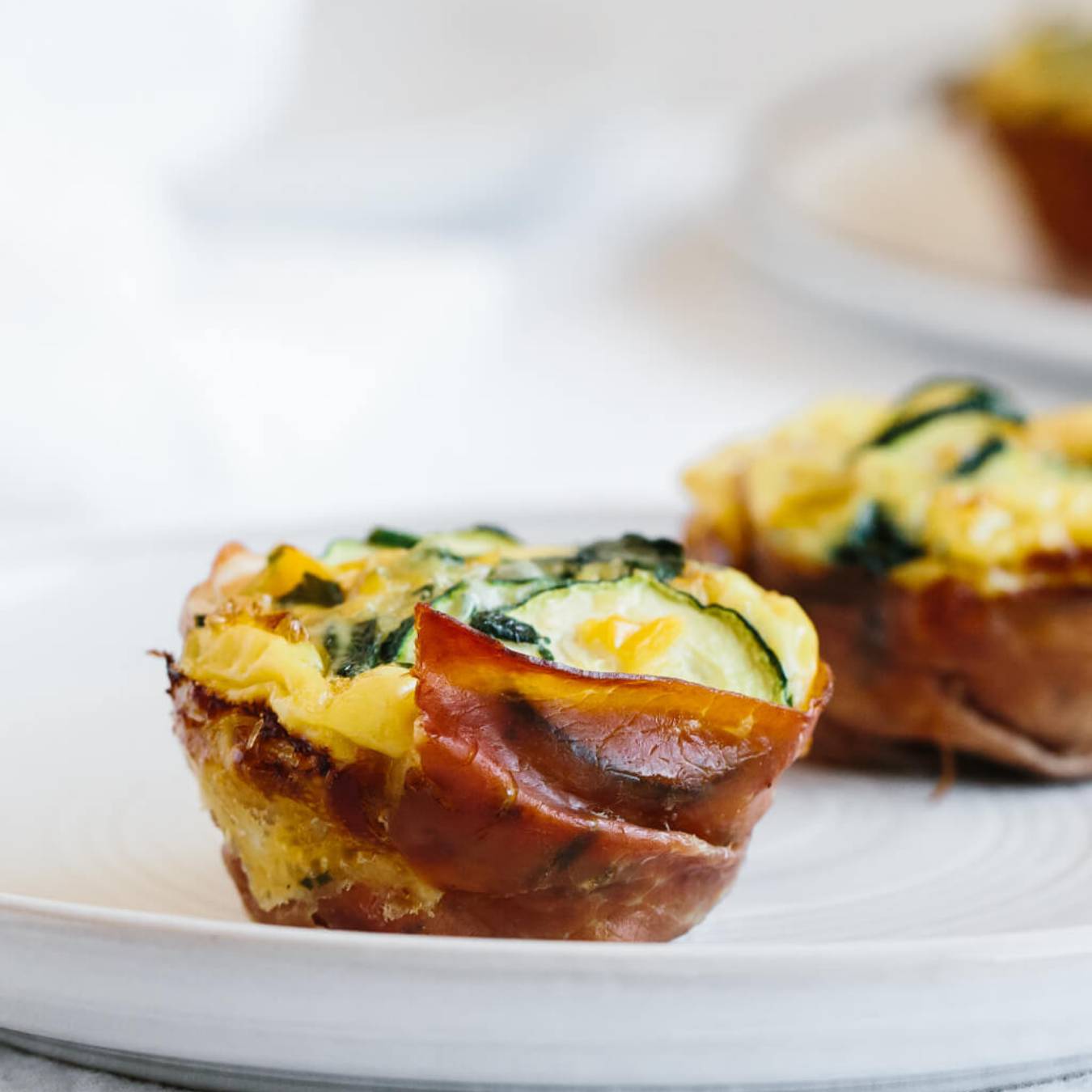 Phết dầu dừa lên khay bánh Muffin. Thêm các lát giăm bông vào khay, tiếp theo đổ hỗn hợp trứng vào rồi cho vào lò nướng và nướng ở nhiệt độ 175ºC (350ºF) trong 30 phút