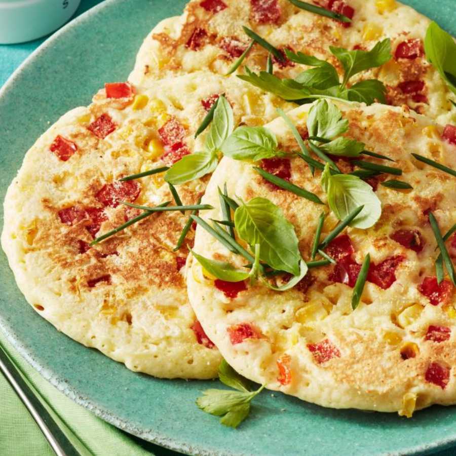 Làm nóng chảo với lượng dầu còn lại trên lửa vừa, cho ¼ lượng bột vào, dàn đều trên chảo, chiên mỗi mặt 3 phút rồi chuyển ra đĩa. Lặp lại với phần bột còn lại, chuyển tất cả bánh kếp vào đĩa và thưởng thức