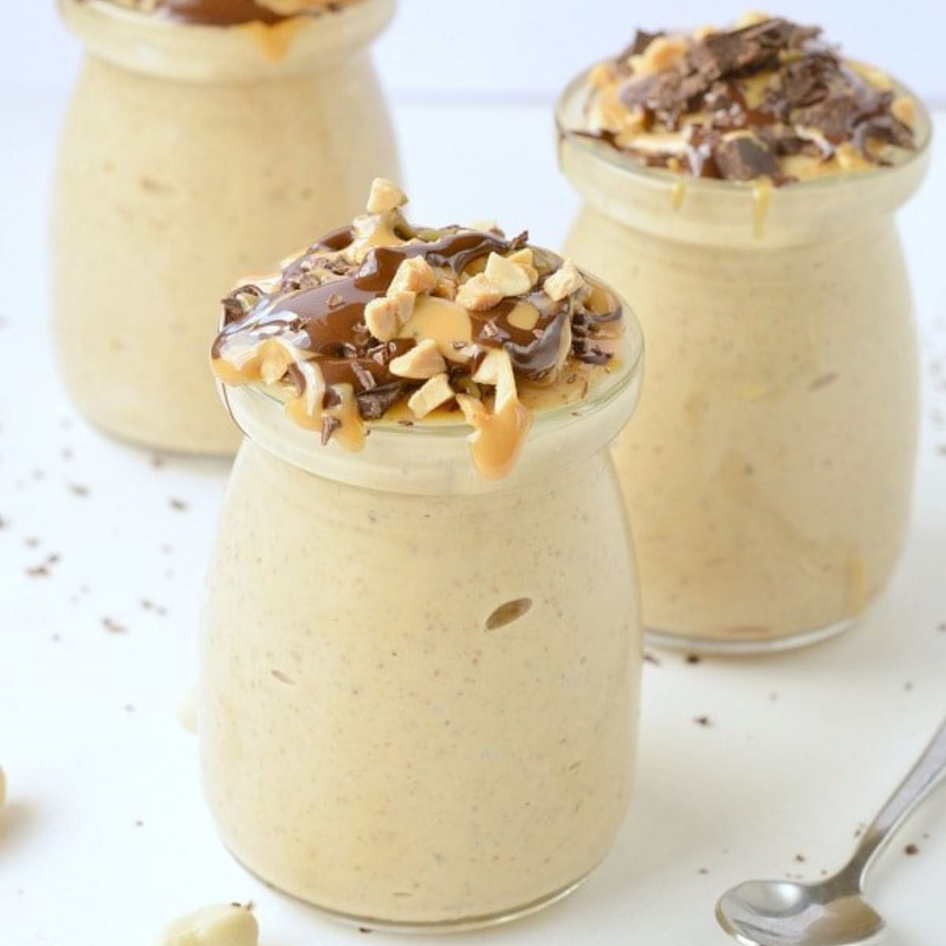 Dùng một cái bát, trộn sữa với hạt chia, bơ đậu phộng, chiết xuất vani, Stevia, một chút muối và trộn đều