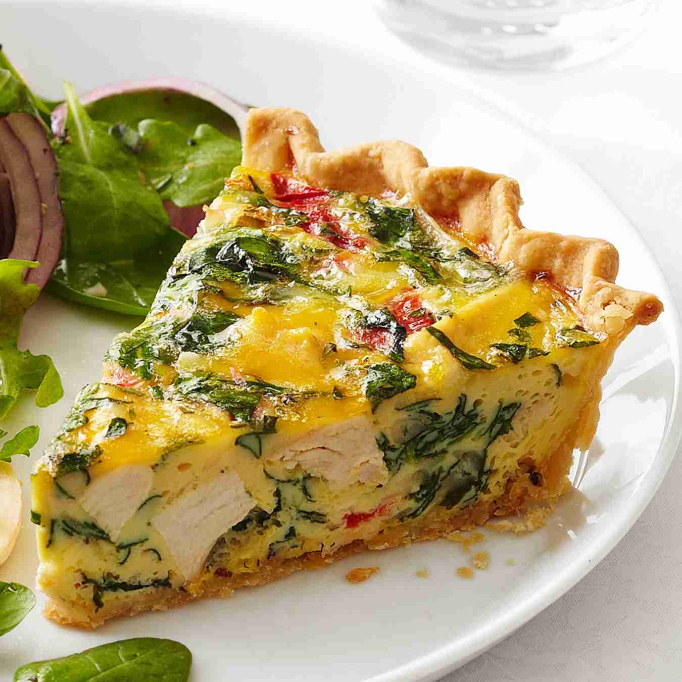 Dùng một cái bát, trộn 6 quả trứng với muối, hạt tiêu, lá kinh giới, kem, hạt thì là và đánh bông. Cho thêm thịt gà và đảo đều một lần nữa