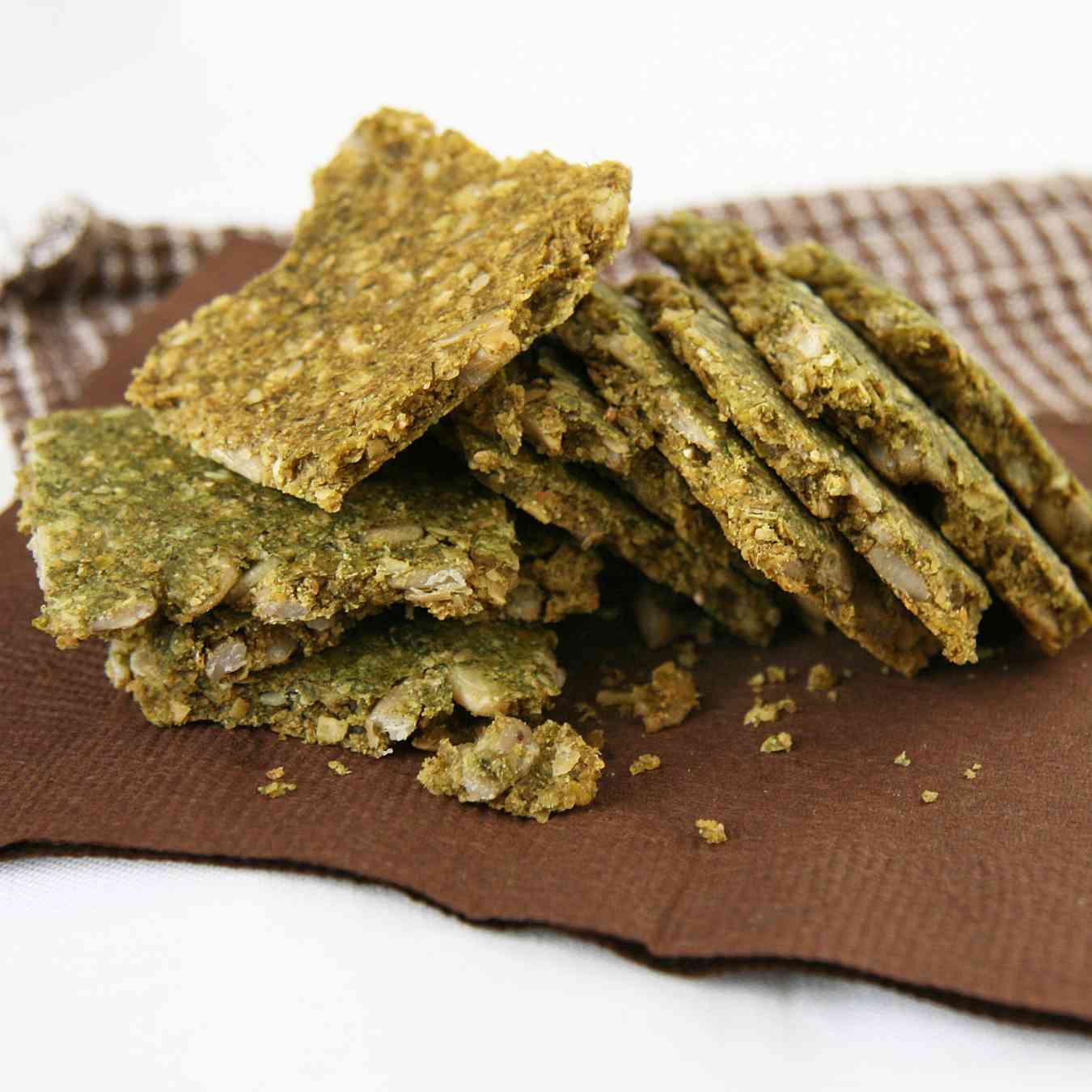 Trải lên khay, cắt thành những chiếc bánh quy cỡ vừa, đặt trong máy sấy thực phẩm và sấy trong 24 giờ ở 45ºC (115ºF) (lưu ý lật nửa chừng)