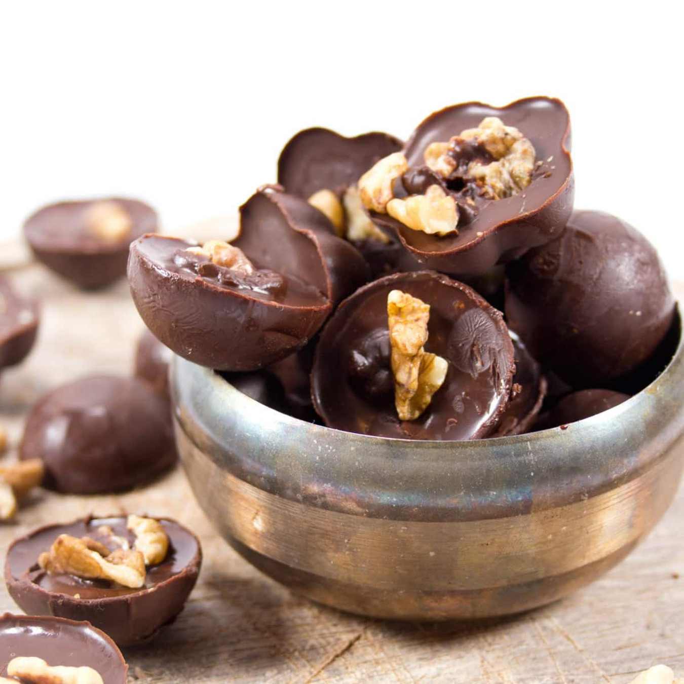 Đổ hỗn hợp bột cacao lên hạt óc chó và để trong tủ lạnh trong 6 giờ