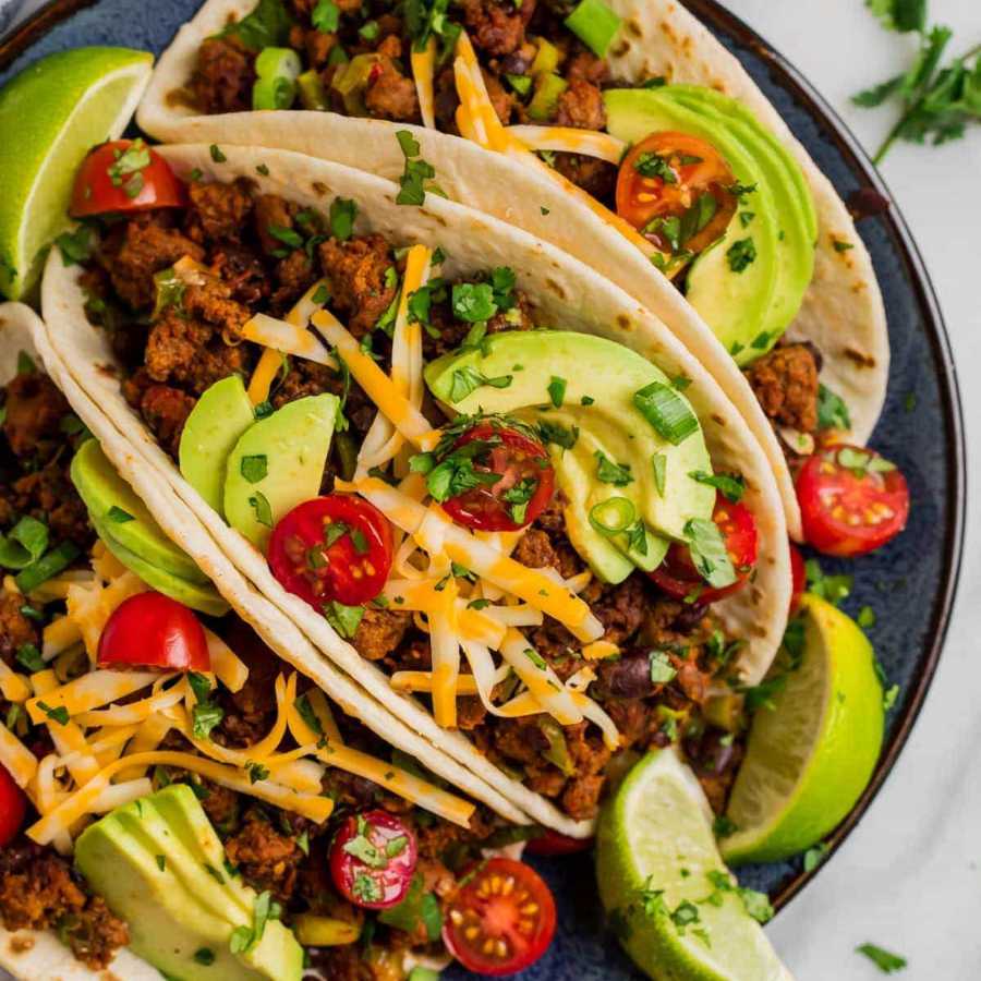 Chia đều hỗn hợp trứng vào từng chiếc bánh Taco, sau đó đặt một lát bơ vào bánh