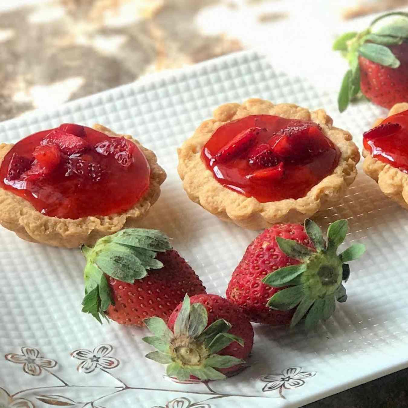 Trộn Baking soda, bột nở, bột dừa và nước rồi đổ lên dâu tây