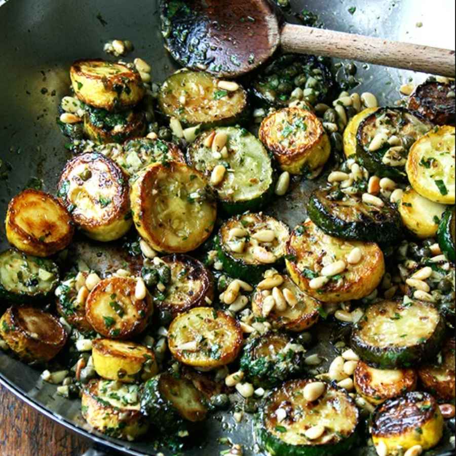 Thêm bí ngòi và các thành phần nguyên liệu khác, đảo đều, nấu trên lửa vừa trong 25 phút, chia ra các đĩa và thưởng thức