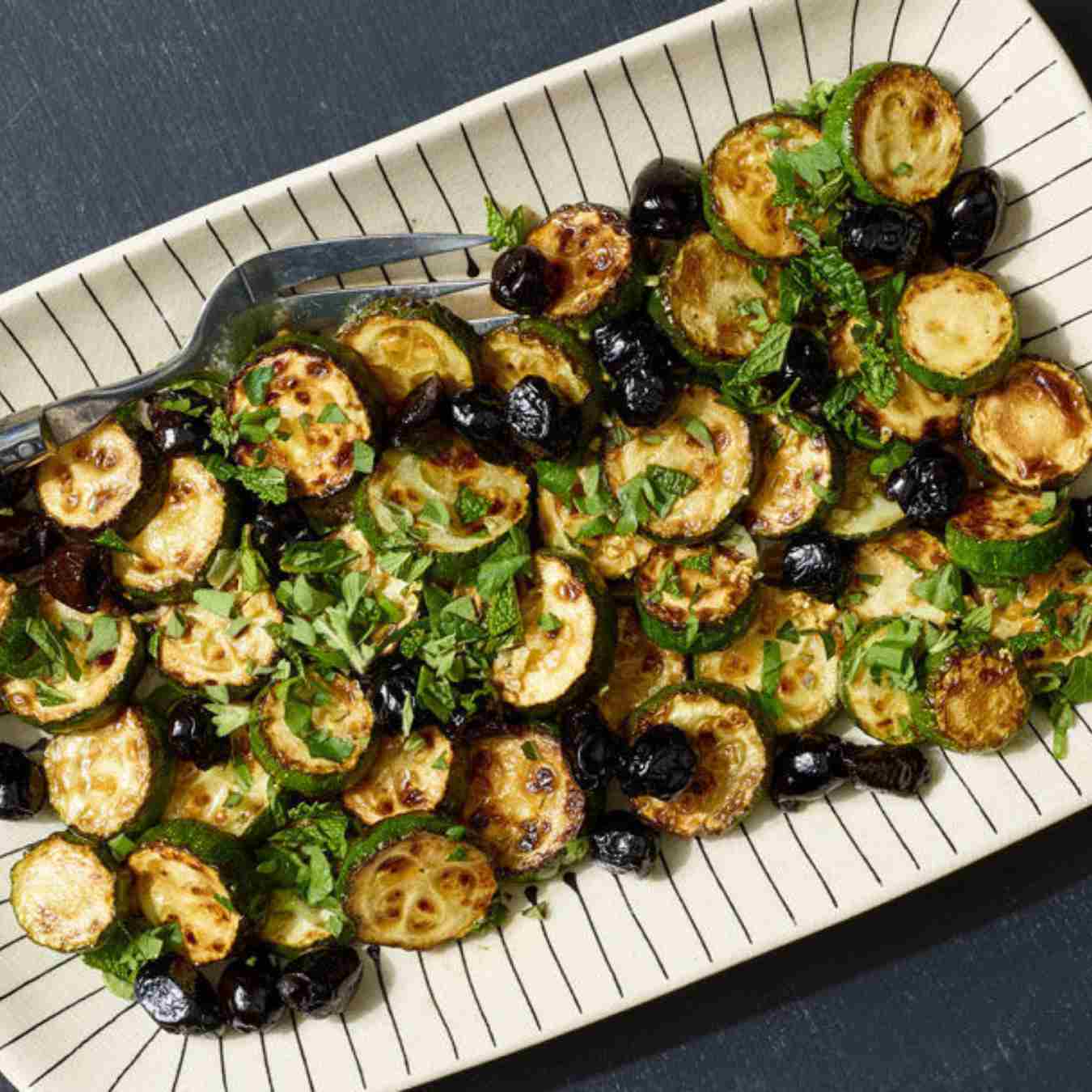Thêm ô liu, bí ngòi và các thành phần khác, đảo đều, nấu trên lửa vừa trong 18 phút nữa rồi chia ra đĩa và thưởng thức
