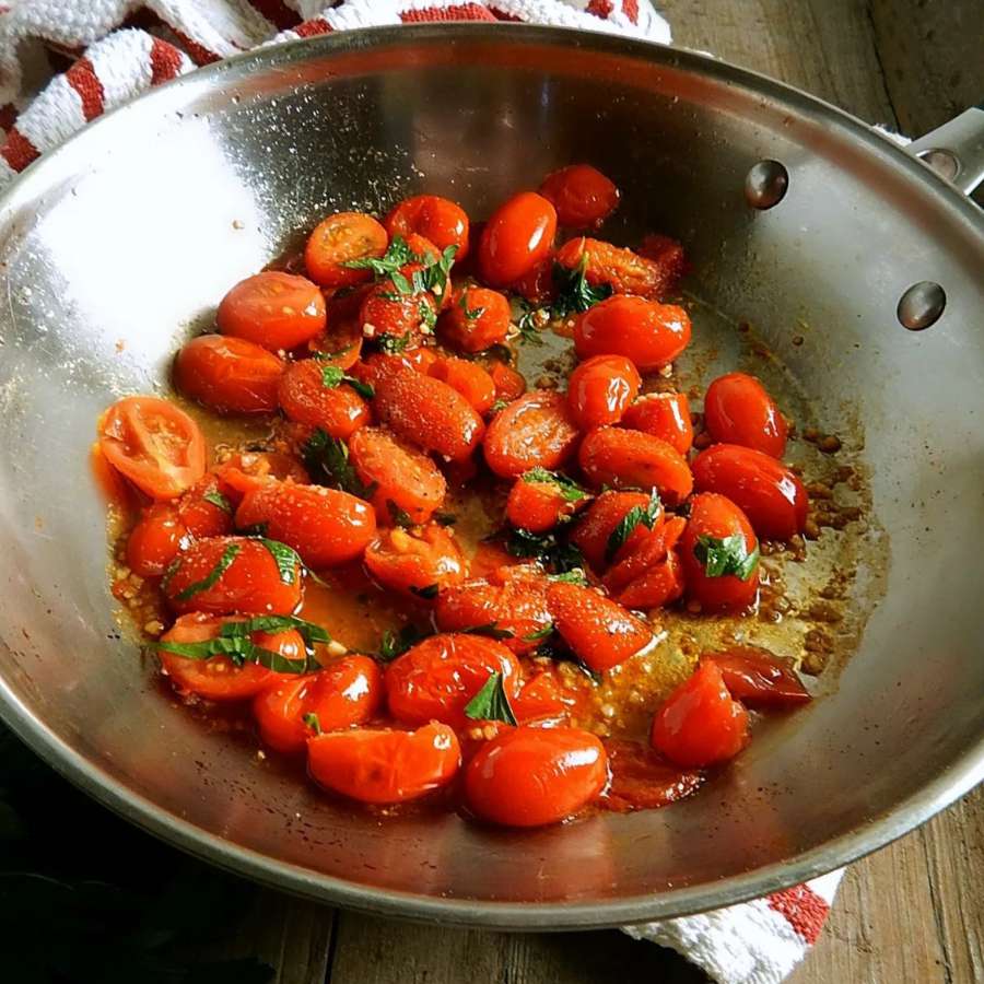 Làm nóng chảo với dầu ăn ở lửa vừa, cho cà chua, nước cốt chanh và các thành phần nguyên liệu khác vào, đảo đều, nấu trong 10 phút, chia ra đĩa và thưởng thức