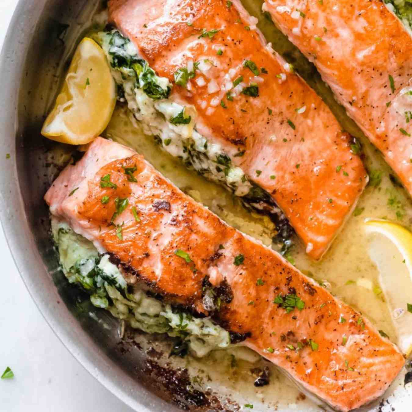 Rạch một đường dọc một bên của mỗi miếng phi lê cá hồi