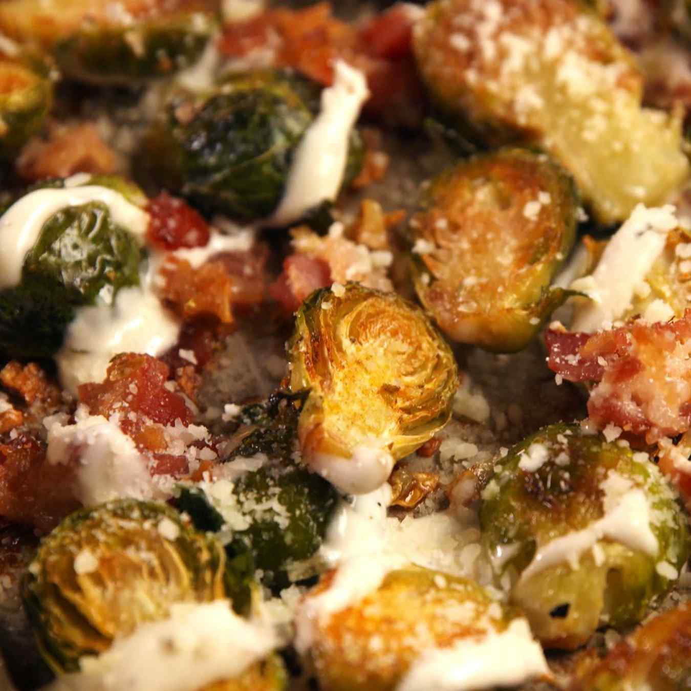 Cải Brussels nướng với nước sốt