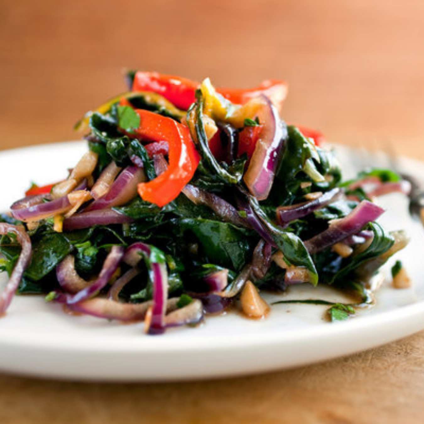Cải cầu vồng áp chảo với thịt heo xông khói