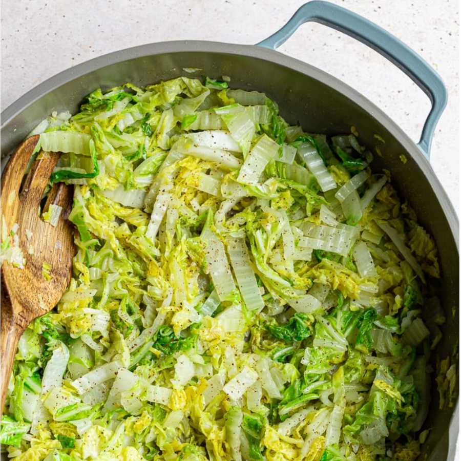 Thêm cải thảo và các thành phần nguyên liệu khác vào, đảo đều, nấu trên lửa vừa thêm 13 phút nữa, chia ra các đĩa và thưởng thức