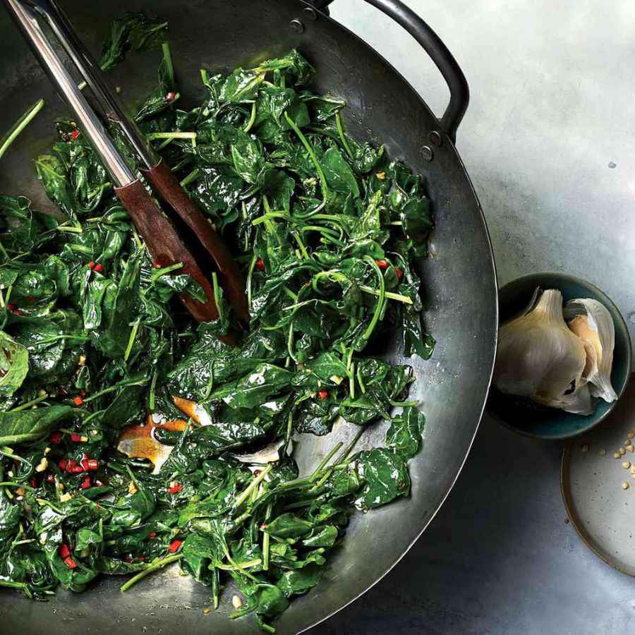 Làm nóng chảo với dầu ăn ở lửa mức trung bình cao, cho hành lá, ớt bột và đường Stevia vào đảo đều và áp chảo trong 2 phút