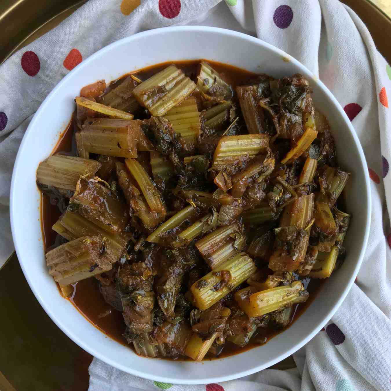 Thêm cần tây, chanh khô, viên cốt gà, muối, tiêu, nước, khuấy đều, đậy nắp chảo và đun ở lửa vừa trong 20 phút