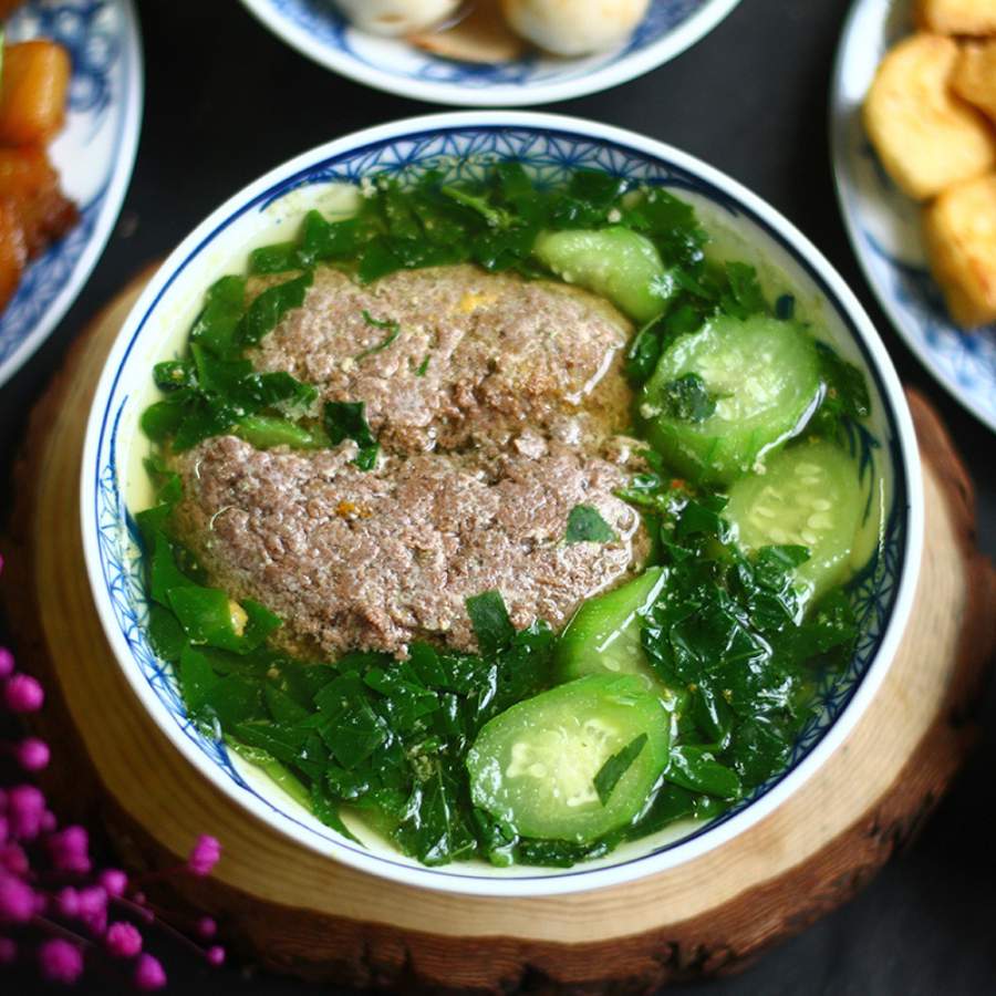 Cho cua vào máy xay nhỏ (hoặc cho vào cối giã) cho một chút muối vào cua, cho nước lã vào bóp kỹ, chắt lấy nước, cho thêm mắm tôm vào nước cua