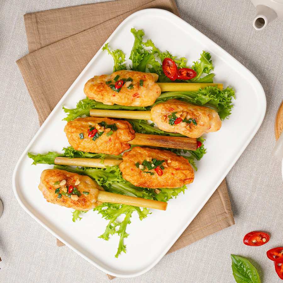 Mía rửa sạch, chẻ nhỏ, xiên tôm vào nướng nhỏ lửa bằng than hoa. Cho ăn nóng, kèm với rau sống và nước mắm chanh ớt tỏi