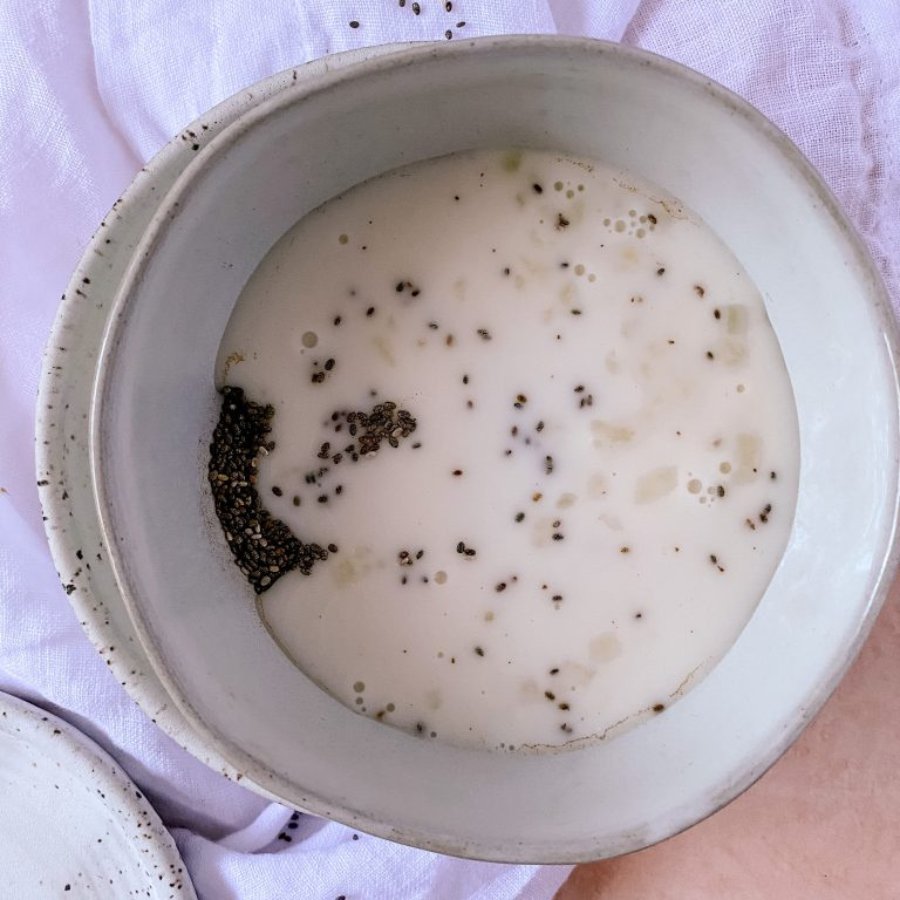 Dùng một cái bát, trộn kem dừa với sữa, cơm súp lơ và các thành phần nguyên liệu khác, trộn đều, để riêng ra trong 5 phút, sau đó chia vào các bát nhỏ và thưởng thức