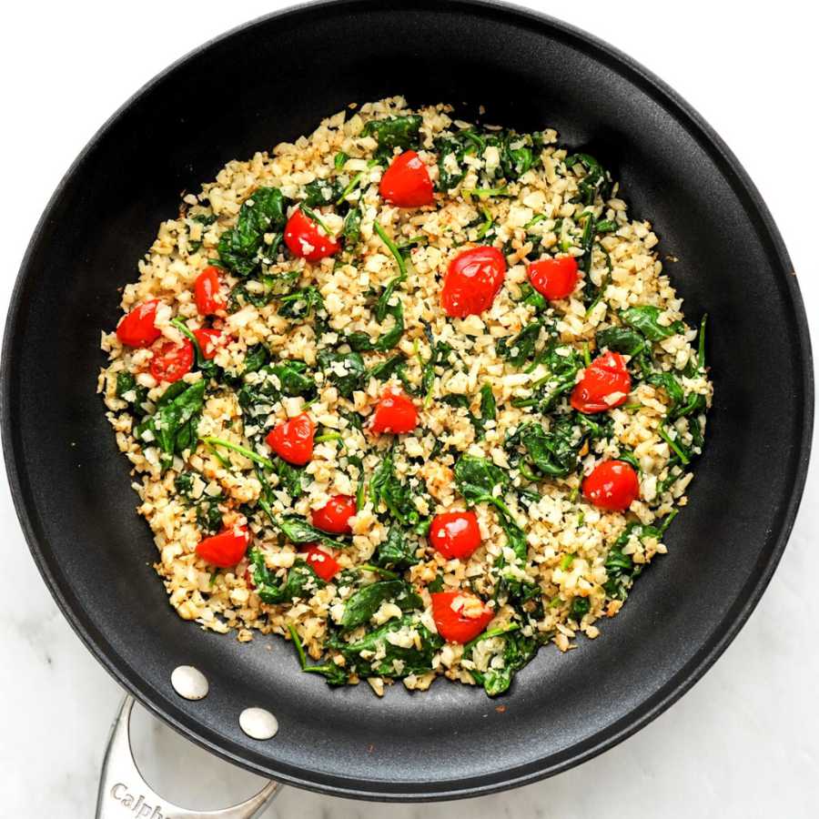 Cơm súp lơ với rau chân vịt anh đào