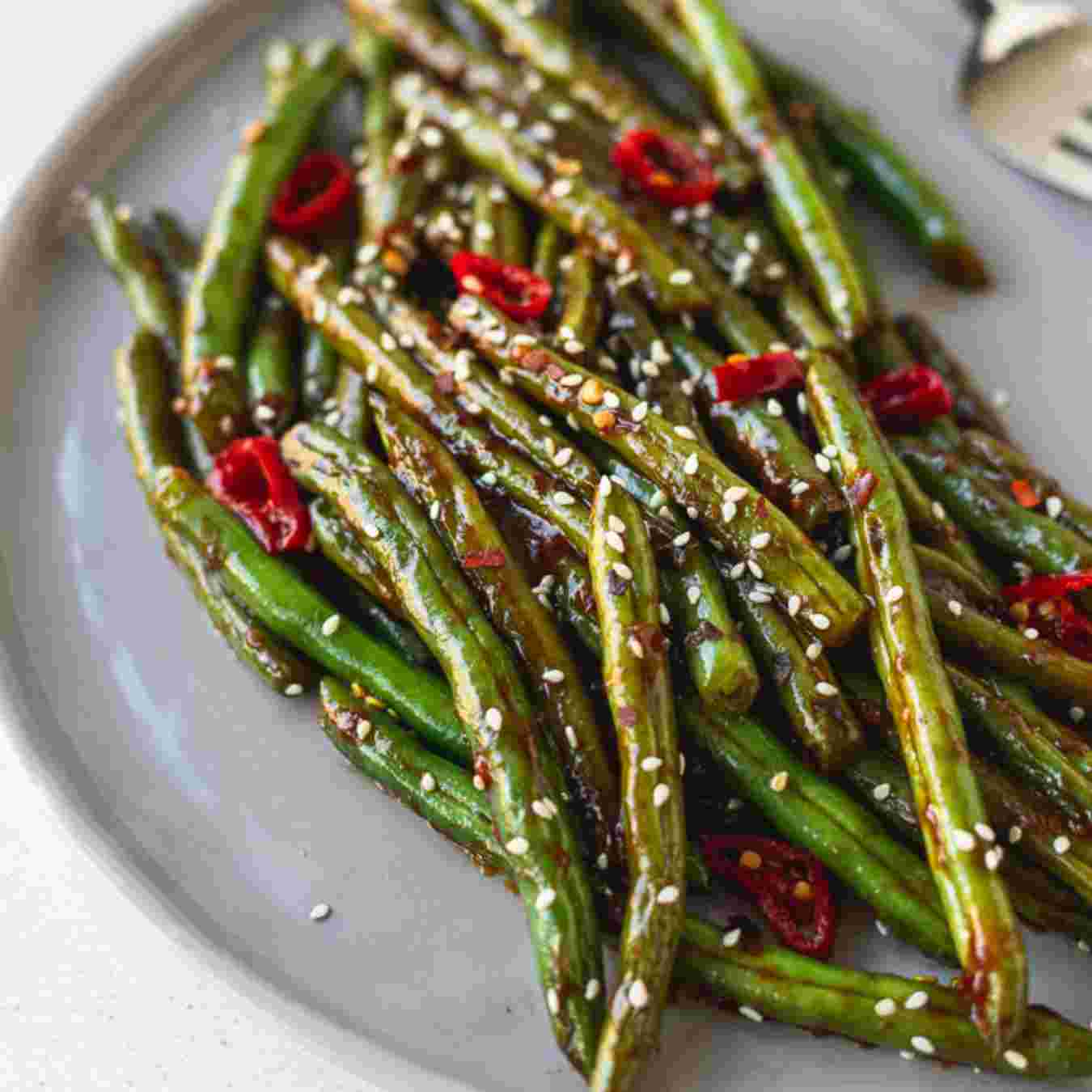 Cho đậu que vào xào từ 4-5 phút cho đến khi đậu chín qua và được phủ hoàn toàn bằng dầu cùng với gia vị