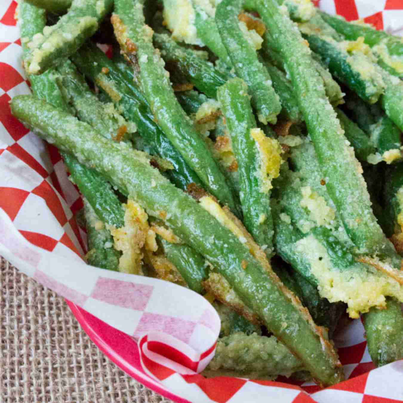 Nhúng đậu que qua hỗn hợp trứng, sau đó nhúng qua hỗn hợp phô mai Parmesan
