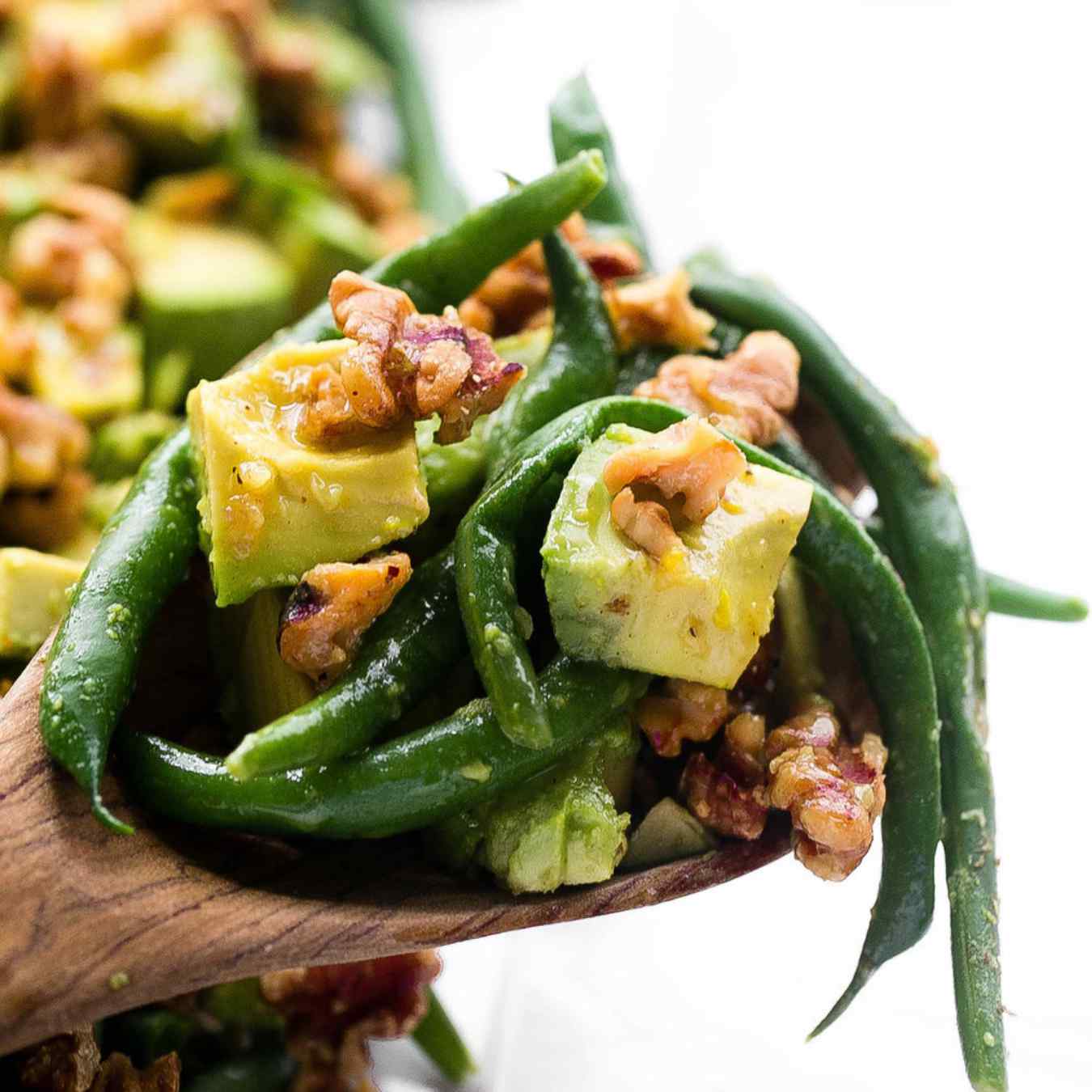 Đậu que xào hành với trái bơ