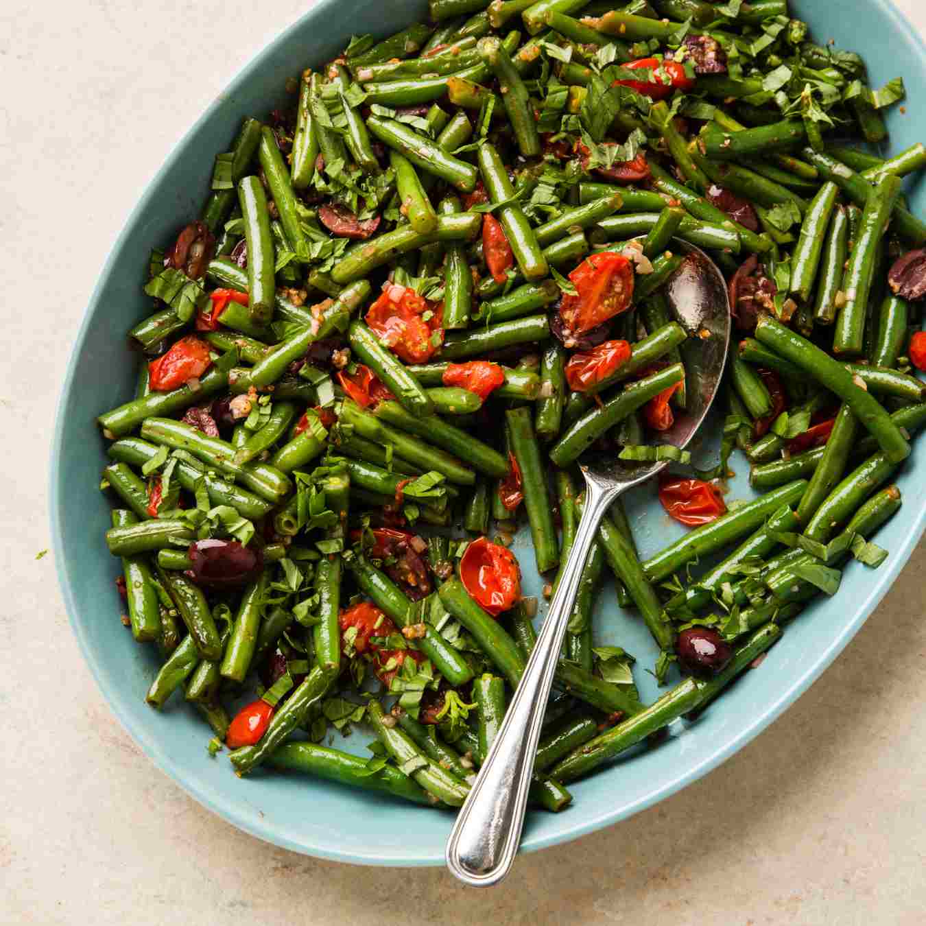Cho đậu que và các nguyên liệu khác vào, đảo đều, nấu thêm 15 phút nữa, chia ra đĩa và thưởng thức