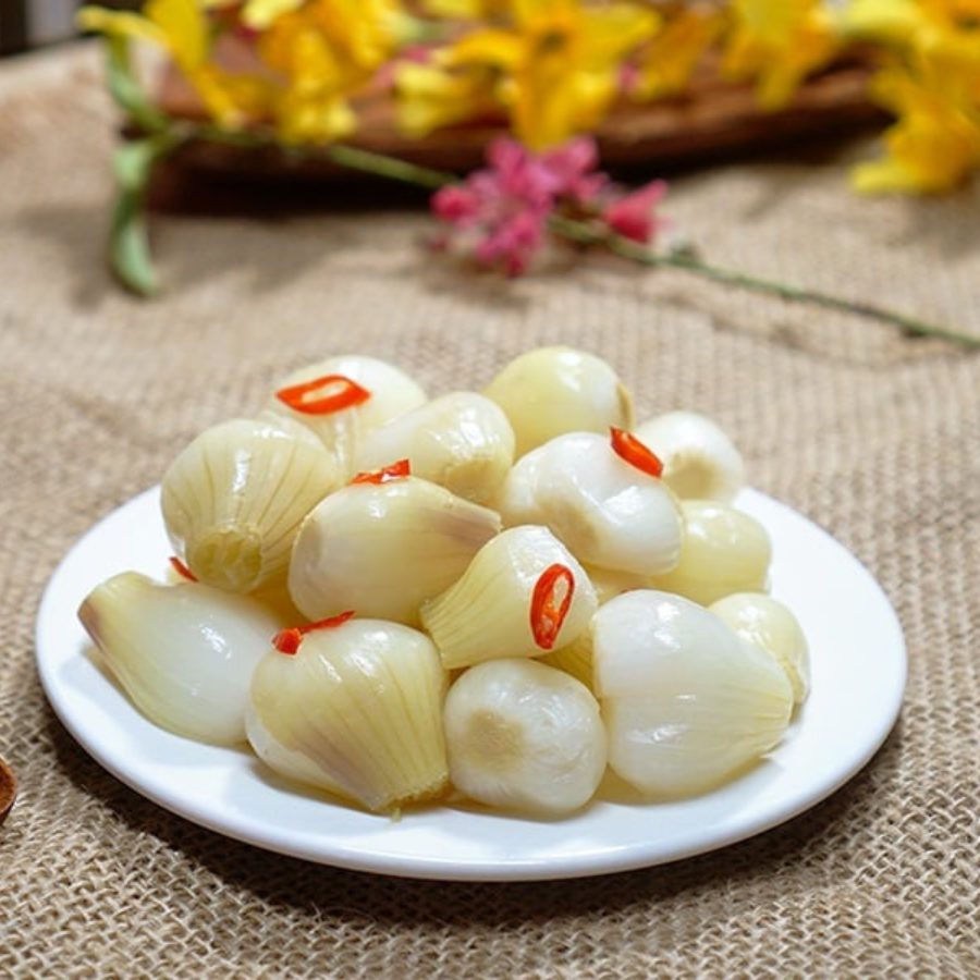 Chú ý: Nước, giấm bao giờ cũng phải ngập mặt kiệu, nếu thấy giấm đục thì phải thay giấm khác vào như vậy kiệu mới bảo quản được lâu