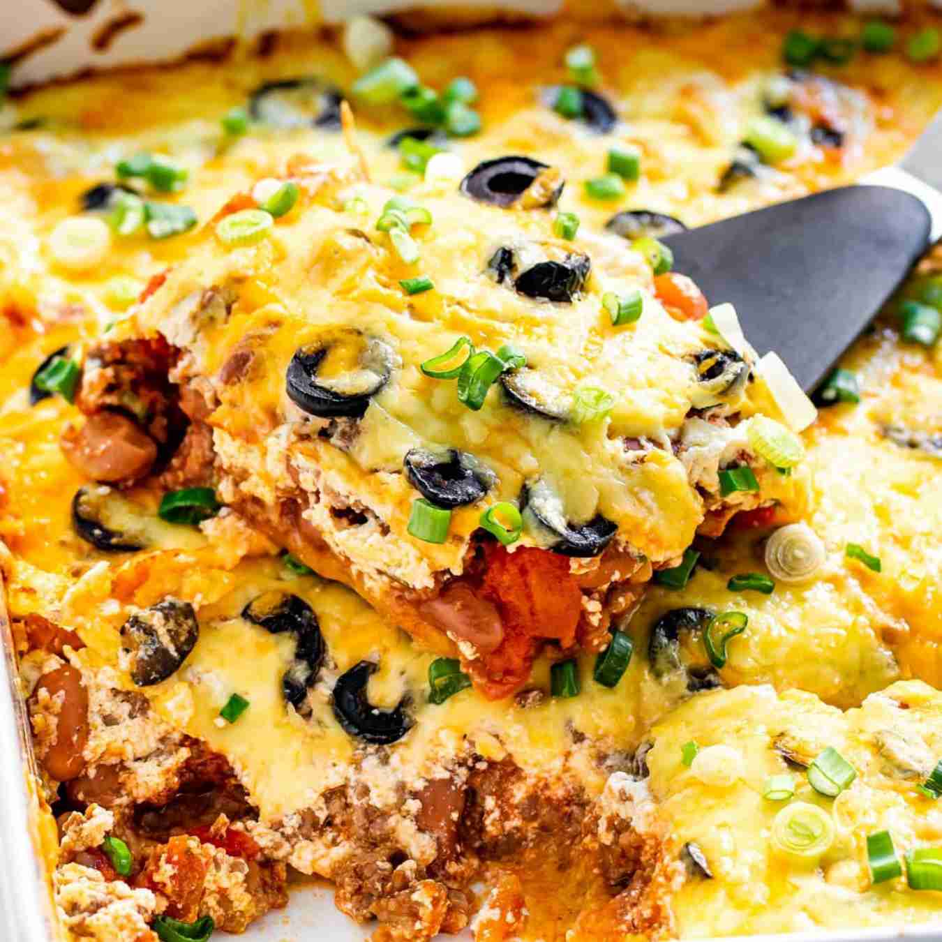 Phết dầu ăn lên khay nướng bằng bình xịt, đặt bánh ngô ở dưới cùng, trải đều hỗn hợp thịt gà lên và rắc phô mai bào sợi