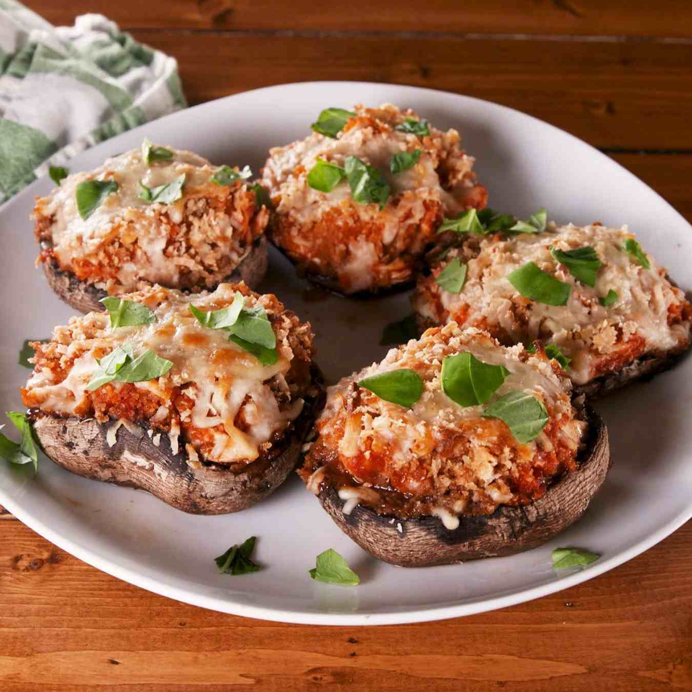 Nhồi hỗn hợp vào từng mũ nấm, rồi đặt lên khay nướng đã lót sẵn giấy nến, xịt dầu ăn, cho vào lò nướng ở nhiệt độ 220ºC (425ºF) và nướng trong 10 phút