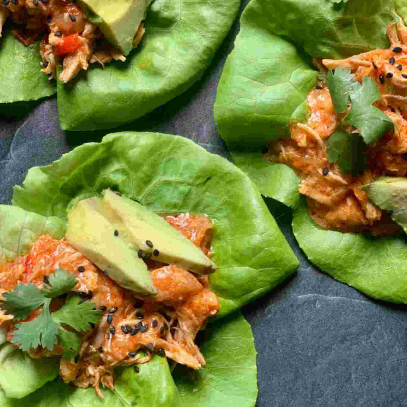 Lấy ra khỏi bếp, cho thêm rau mùi tây. Xếp 2 lá xà lách lớn (hoặc 6 lá xà lách nhỏ) lên đĩa rồi đặt thịt gà lên trên và tiếp theo là giá đỗ để thưởng thức