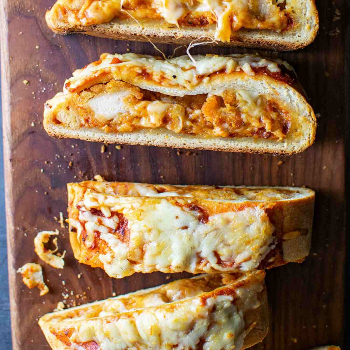 Lấy gà ra khỏi lò, cắt thành từng miếng và rắc phô mai Provolone lên trên