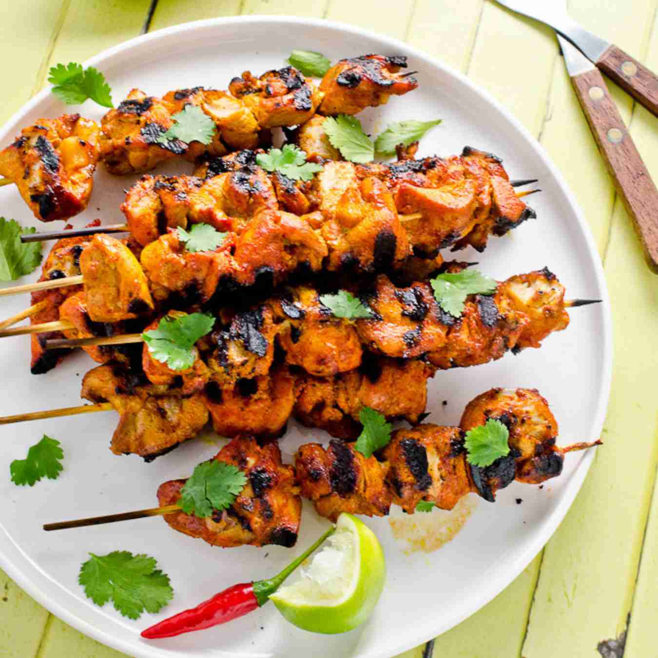 Ngâm que xiên gỗ trong nước ít nhất 1 giờ trước khi sử dụng sau đó xiên thịt gà vào que xiên gỗ (hoặc có thể sử dụng xiên inox)