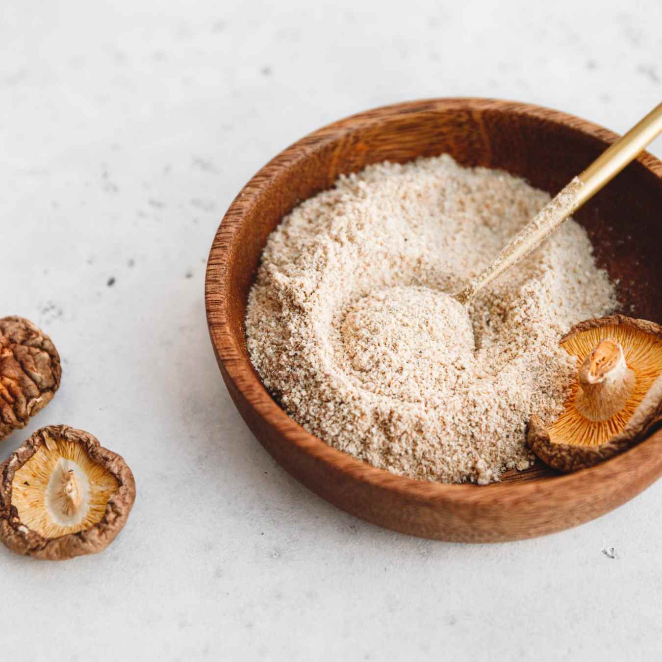 Xay thành bột mịn. Trộn kết hợp bột nấm và các loại thảo mộc khô trong một cái bát nhỏ