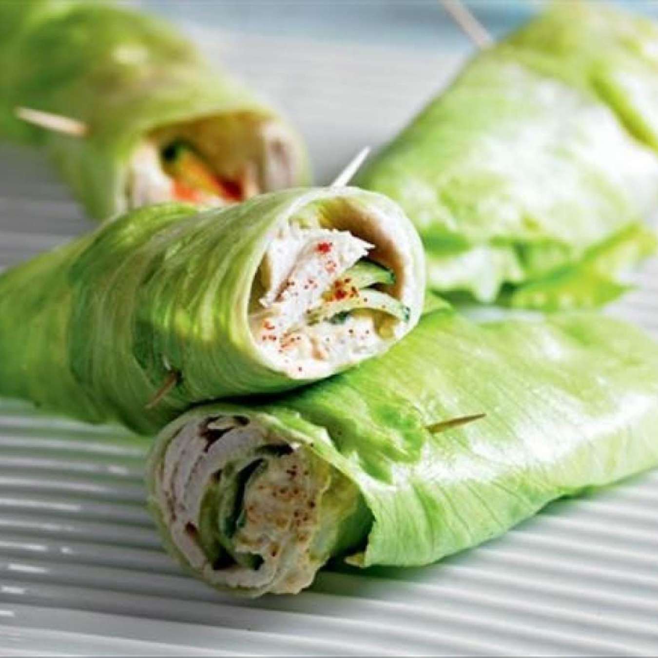 Đặt gà tây trên lá xà lách, sau đó phết mù tạt nâu lên
