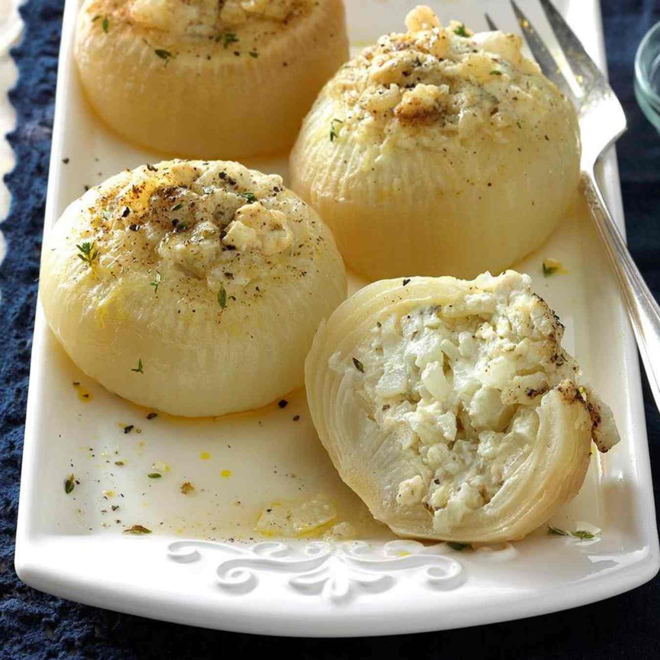 Bóc vỏ hành tây, sau đó cắt phần ngọn, khoét một lỗ ở giữa