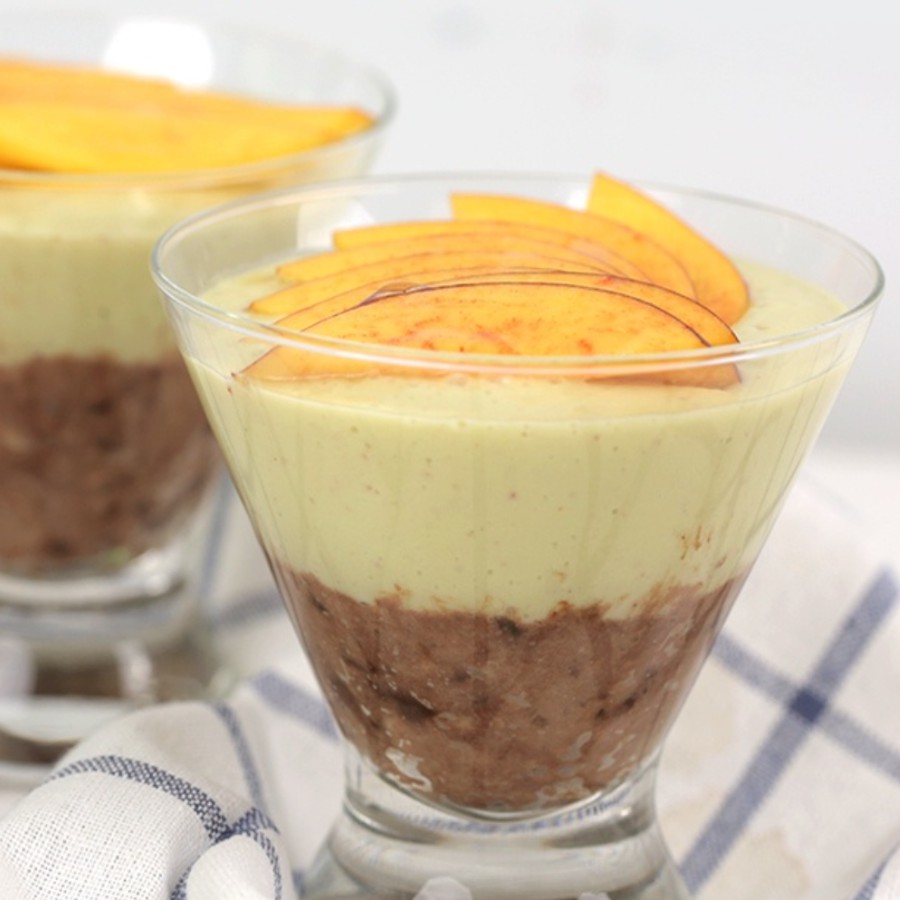 Dùng máy xay, trộn kem dừa với đường Stevia, cacao và các thành phần nguyên liệu khác, xay nhuyễn, chia vào cốc, để lạnh trước khi ăn