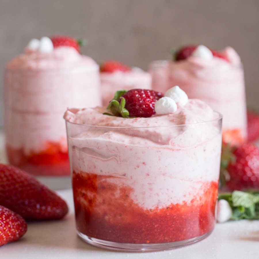 Dùng máy xay sinh tố, trộn dâu tây với kem dừa và các thành phần nguyên liệu khác, xay nhuyễn, chia vào cốc và dùng lạnh