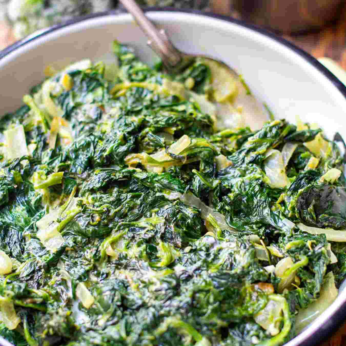 Thêm tỏi vào đảo trong 30 giây hoặc cho đến khi có mùi thơm. Thêm chân vịt và nước cốt dừa béo. Đảo cho đến khi rau chín trong khoảng 3 phút