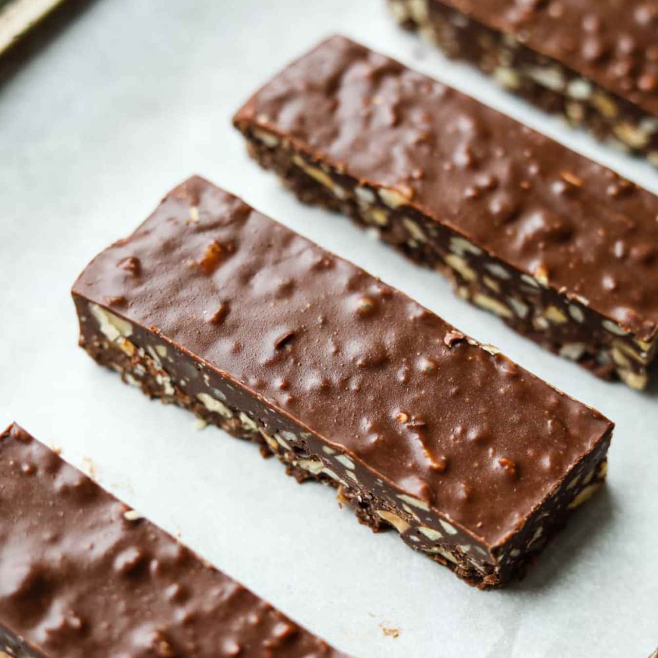 Đổ vào khay có lót giấy nến và để đông lạnh cho đến khi sôcôla đông lại rồi cắt thành que