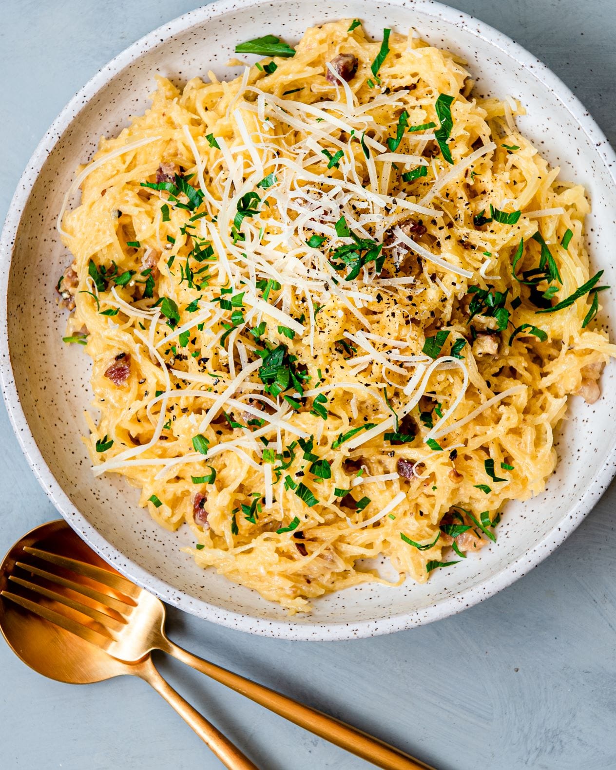 Lấy bí Spaghetti ra khỏi lò, để sang một bên một lúc cho nguội và múc lấy thịt bí