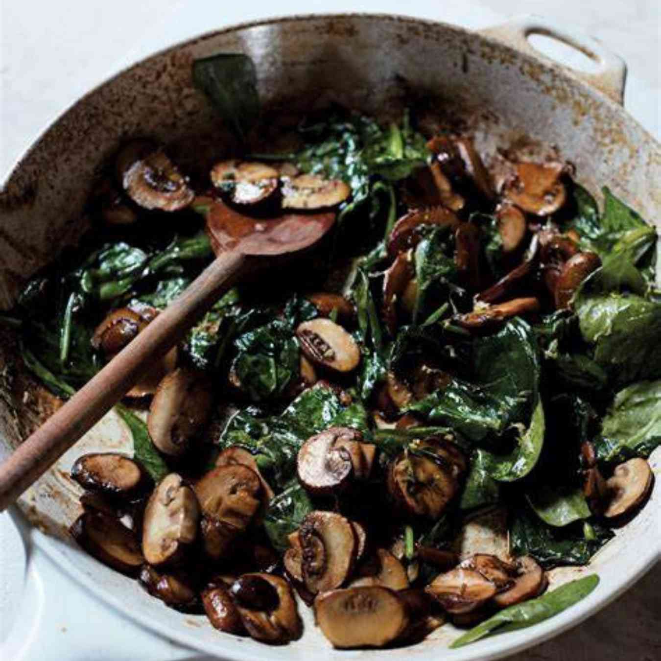 Thêm nấm vào, đảo đều và nấu trong 3 phút. Thêm rau chân vịt, đảo đều và nấu trong 3 phút