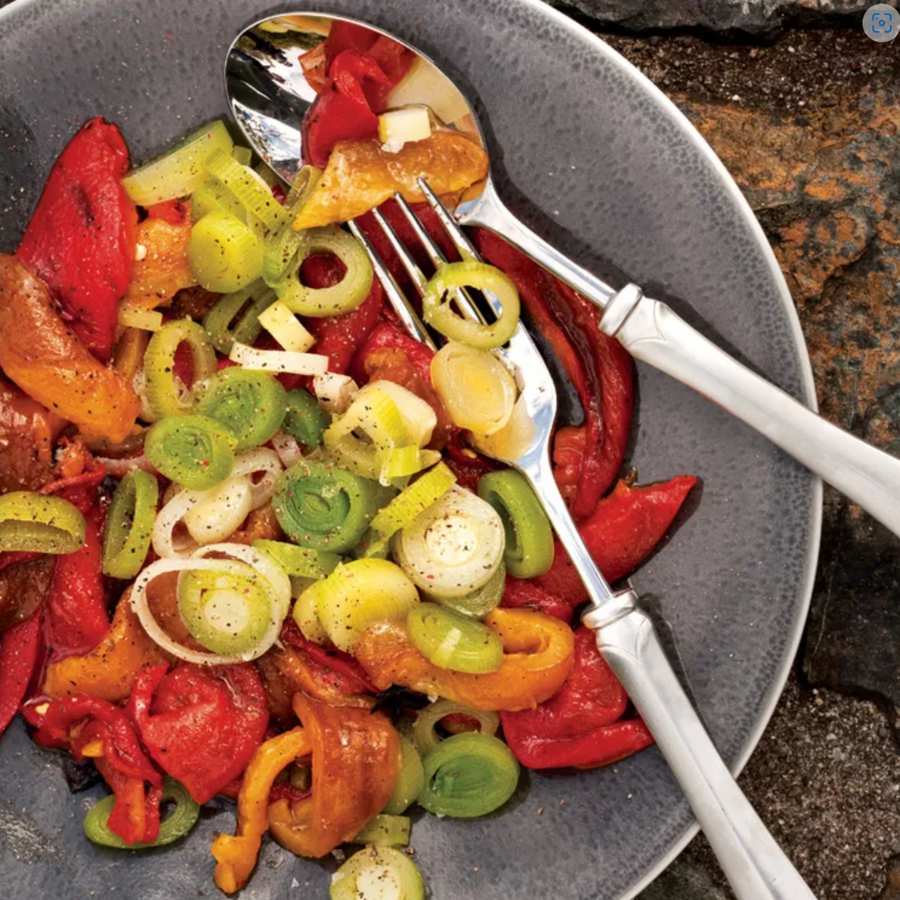Làm nóng chảo với dầu ăn trên lửa vừa, cho tỏi và tỏi tây vào áp chảo trong 5 phút