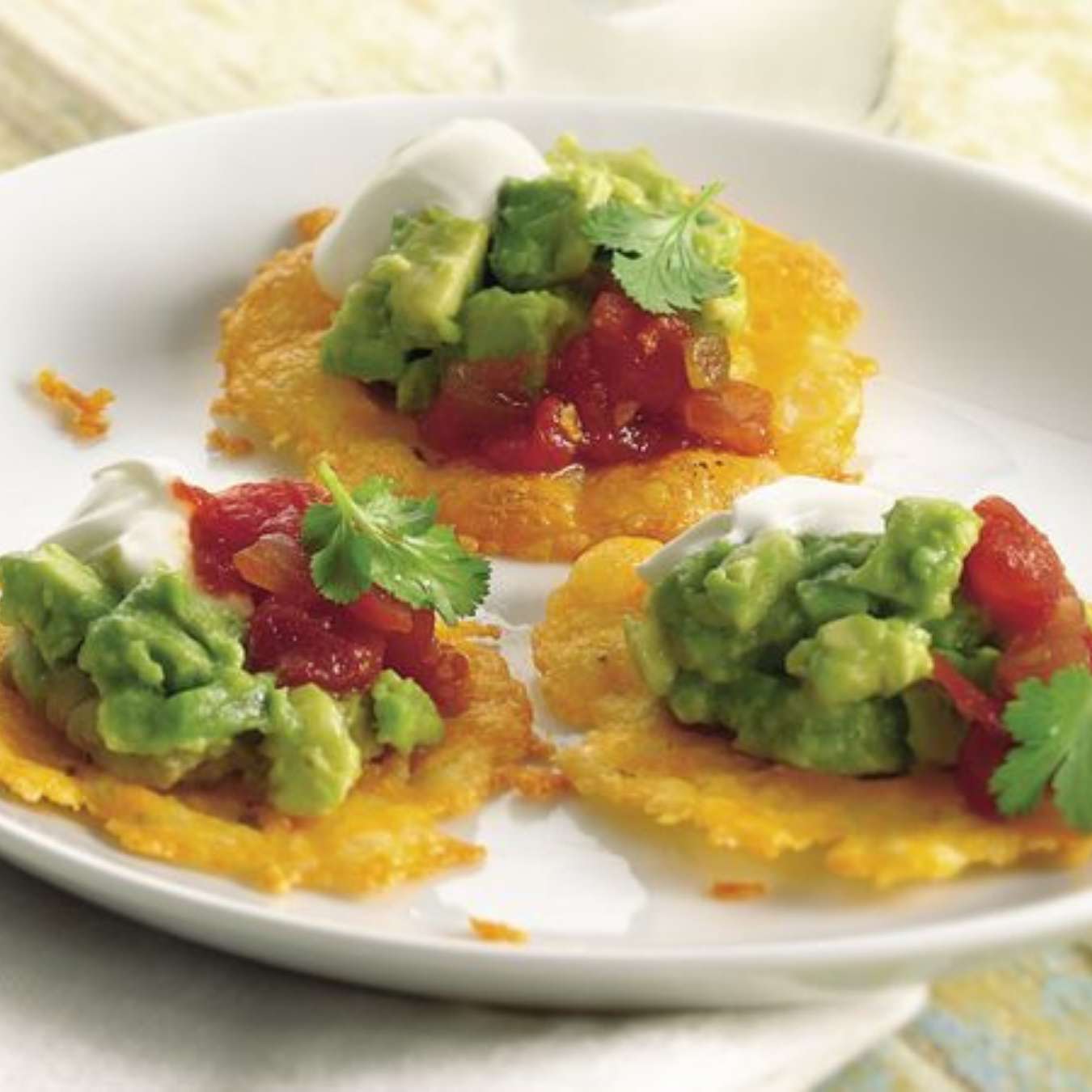Chia từng ¼ cup phô mai lên chảo nướng, lưu ý để nhiều khoảng trống giữa phô mai và nướng trong khoảng 7 phút
