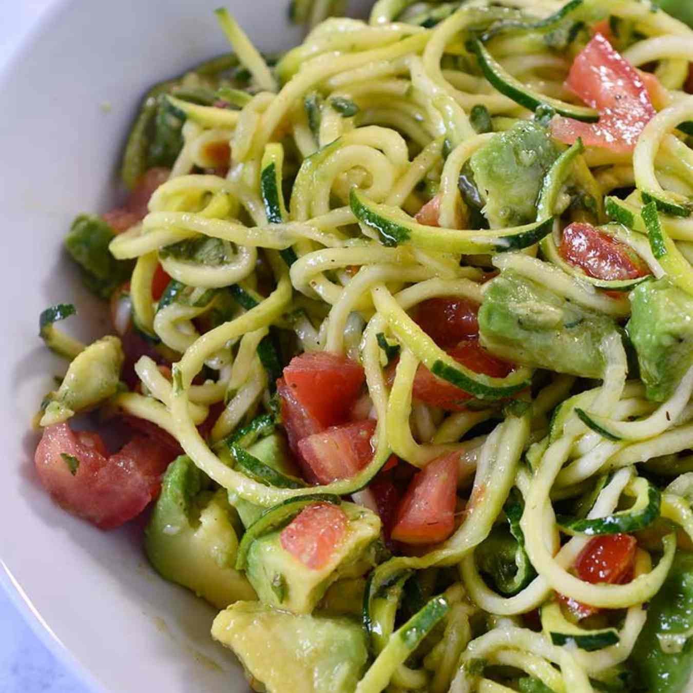Dùng một cái bát, trộn bí ngòi với bơ, cà chua và các nguyên liệu khác với nhau, rồi chia vào các bát nhỏ và để trong tủ lạnh trong 10 phút trước khi dùng cho bữa sáng