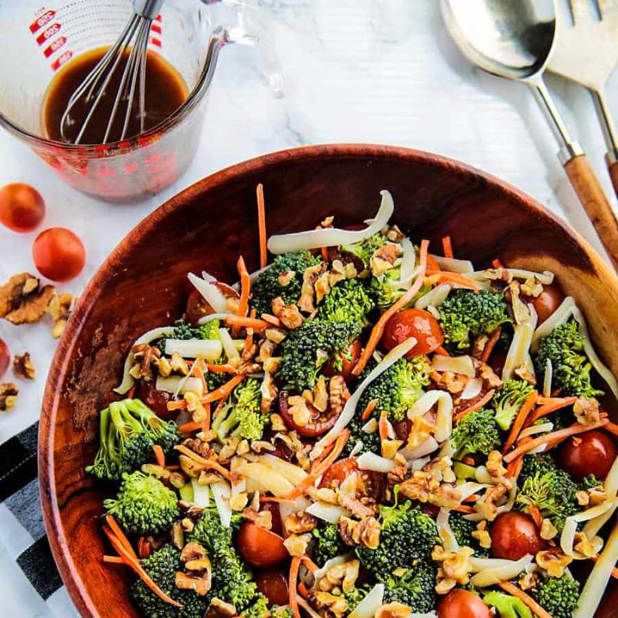Dùng một cái bát, trộn cà chua với đậu bắp, bông cải xanh và các thành phần nguyên liệu khác, trộn đều và thưởng thức