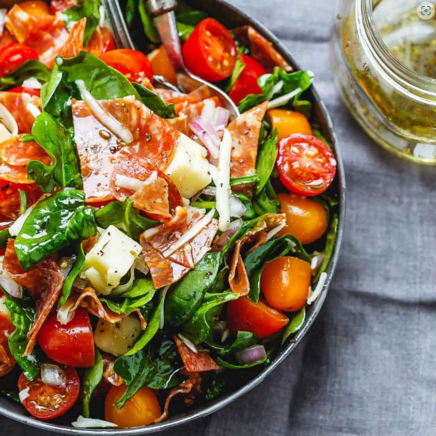 Dùng một cái bát, trộn cà chua bi với cải xoăn, anh đào và các thành phần nguyên liệu khác, trộn đều và thưởng thức