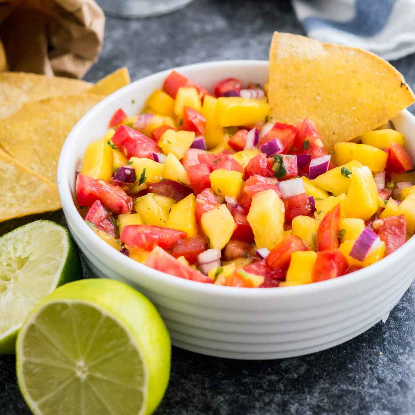 Dùng một cái bát, trộn cà chua với hành tây và ớt Jalapeño