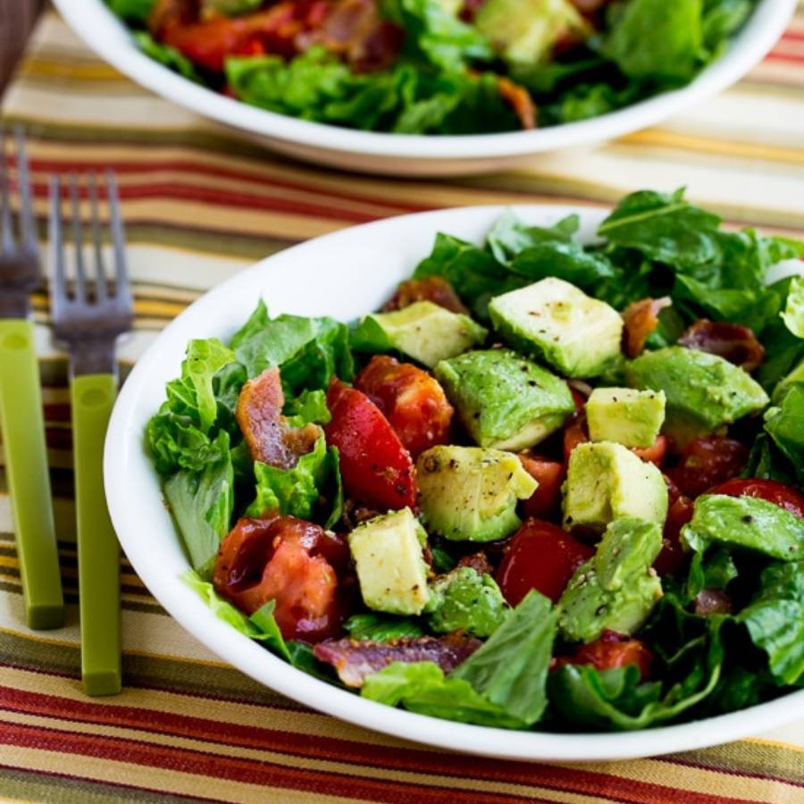 Dùng một cái bát, trộn rau diếp với quả bơ, cà chua và các thành phần nguyên liệu khác, trộn đều, chia vào các bát nhỏ hơn và thưởng thức